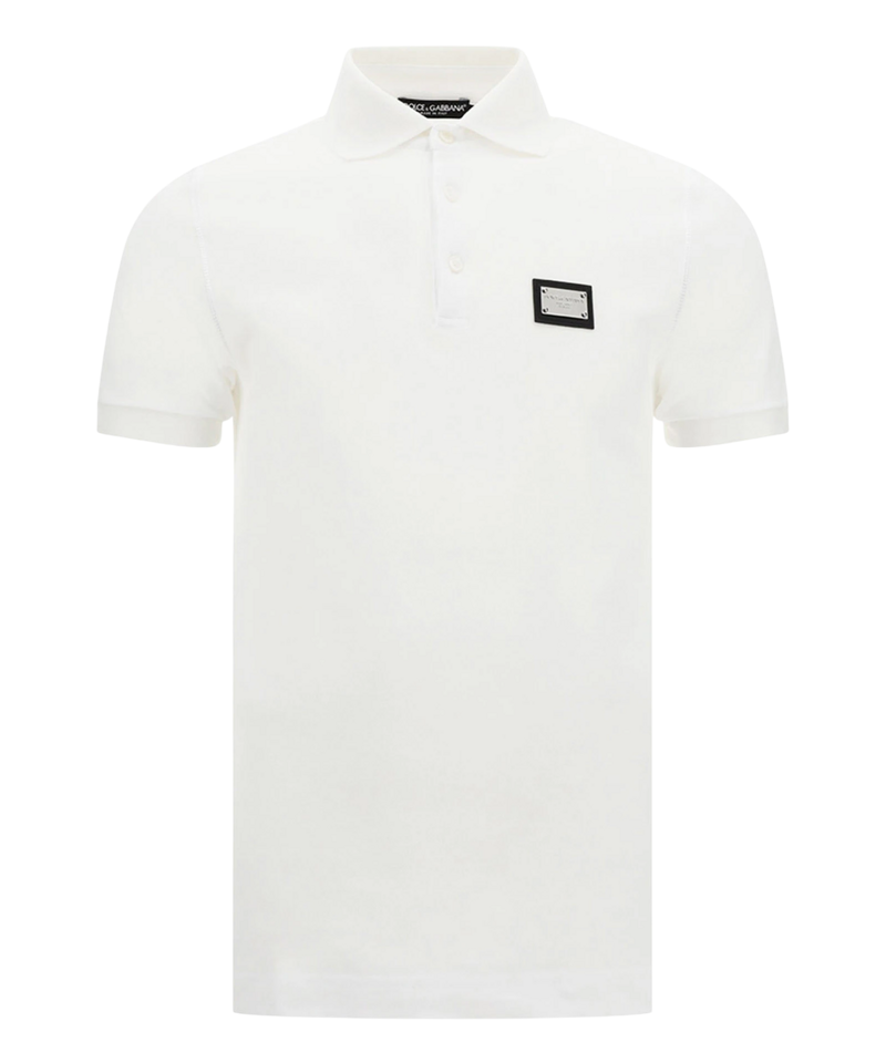 Maglia Polo in Cotone di Dolce&Gabbana, colletto classico a costine, bottoncini sul fronte tono su tono, placca metallica con iconico monogramma D&G del brand incisa e applicata sul fronte, vestibilità regular.
