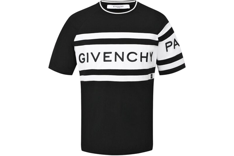 La t-shirt, sapientemente realizzata, presenta applicazioni a fascia bianche sul corpetto e sulla manica sinistra, anch'essa decorata con il logo Givenchy ricamato e l'emblema 4G per una finitura contemporanea e senza sforzo. La t-shirt presenta anche un collo a coste a righe per un design completo.